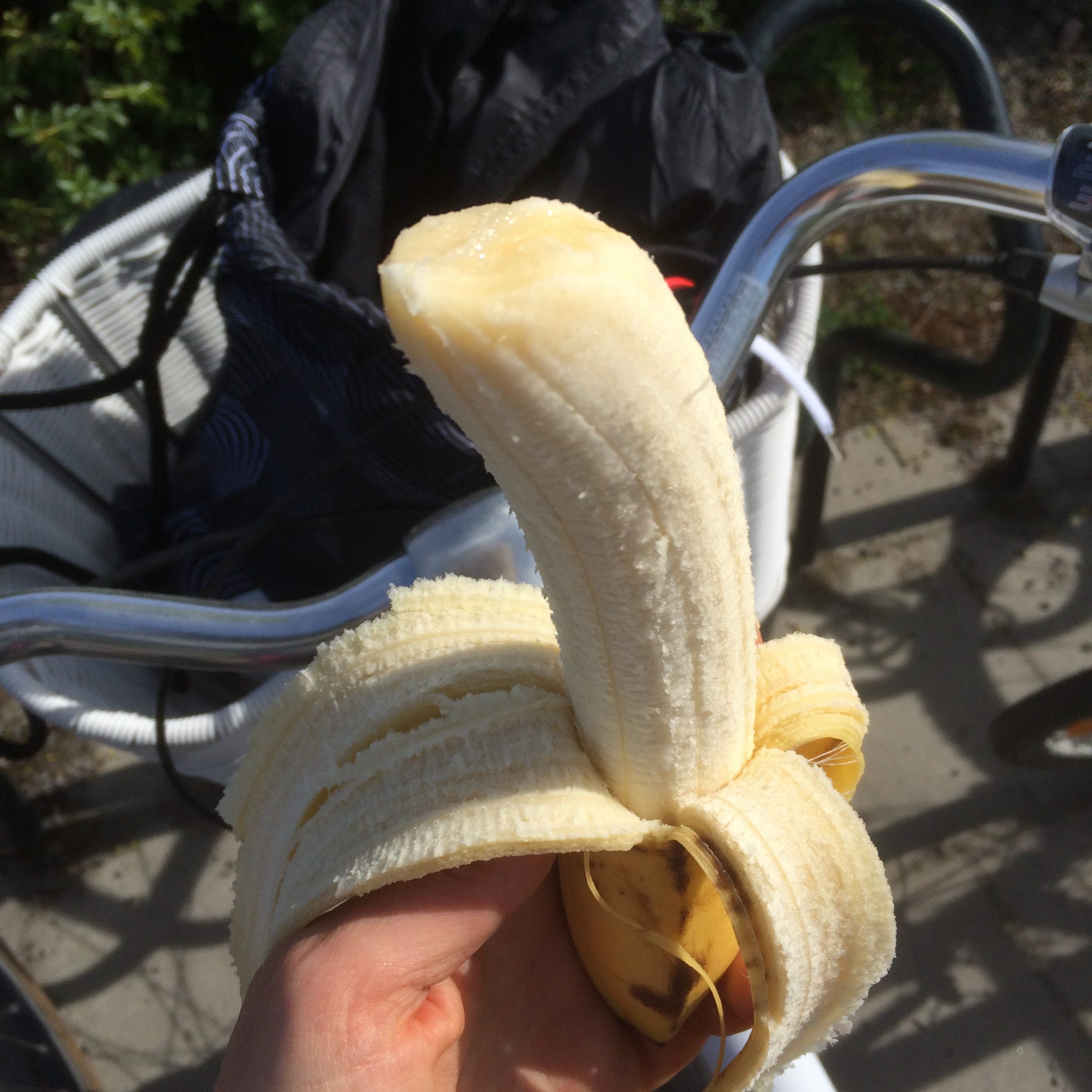 Lite påfyllnad av energi innan hemfärd :). Jag älskar bananer, både färska och frysta.