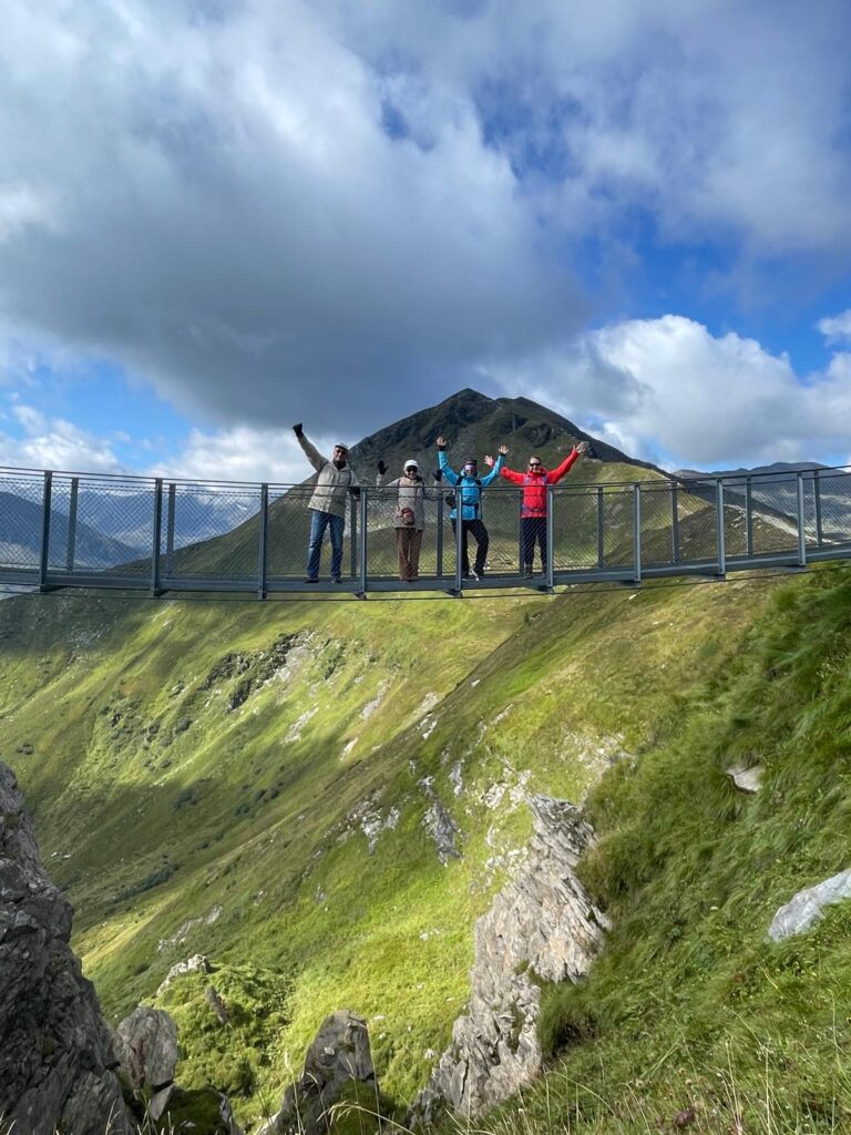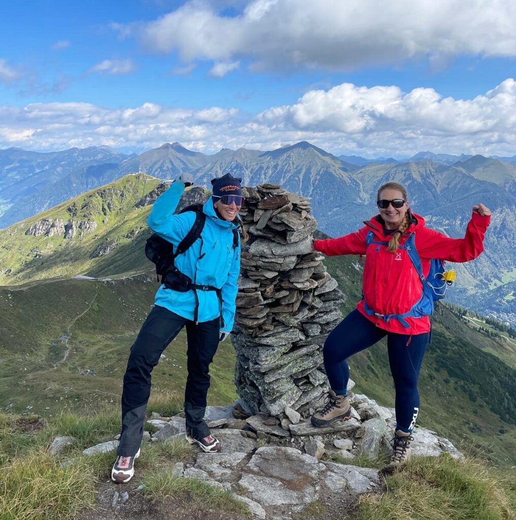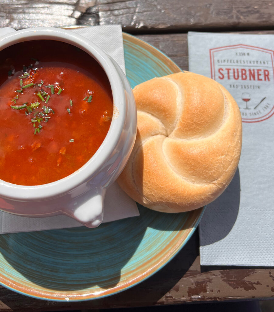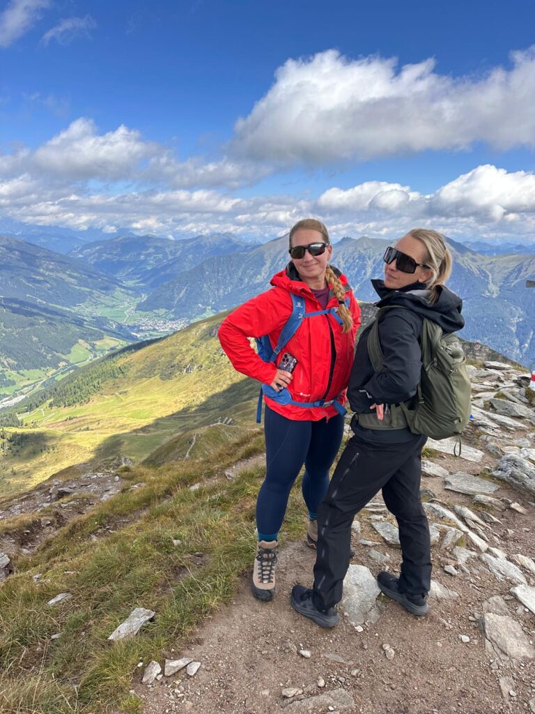 Första heldagen i vackra Bad Gastein. Vi gick från hotellet upp mot Bahnhof och till liftstationen. Vi åkte lift upp till Stubnerkogel (2246 möh) där Gasteinskylten står. Strosade runt på toppen, gick på hängbroar och drack kaffe with a view. Jag och systrarna gick sedan upp till toppen Tischkogel (2409 möh). Alltså vyerna. Magiskt! Vi gick en annan väg ner från toppen. Jag stack mig på några spretande ståltrådar i en vajer på väg ner. Jag fick hjälp med handsprit och plåster av mina systrar. Vi mötte sedan upp föräldrarna och åt gulaschsoppa på Gipfelrestaurant Stubner innan vi tog liften ner igen. Hela familjen strosade runt i Bad Gastein innan dagens 5-rättersmiddag. //Vickan