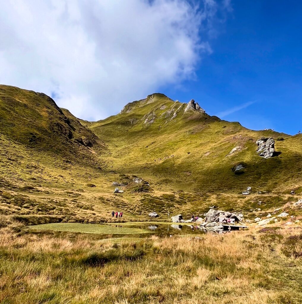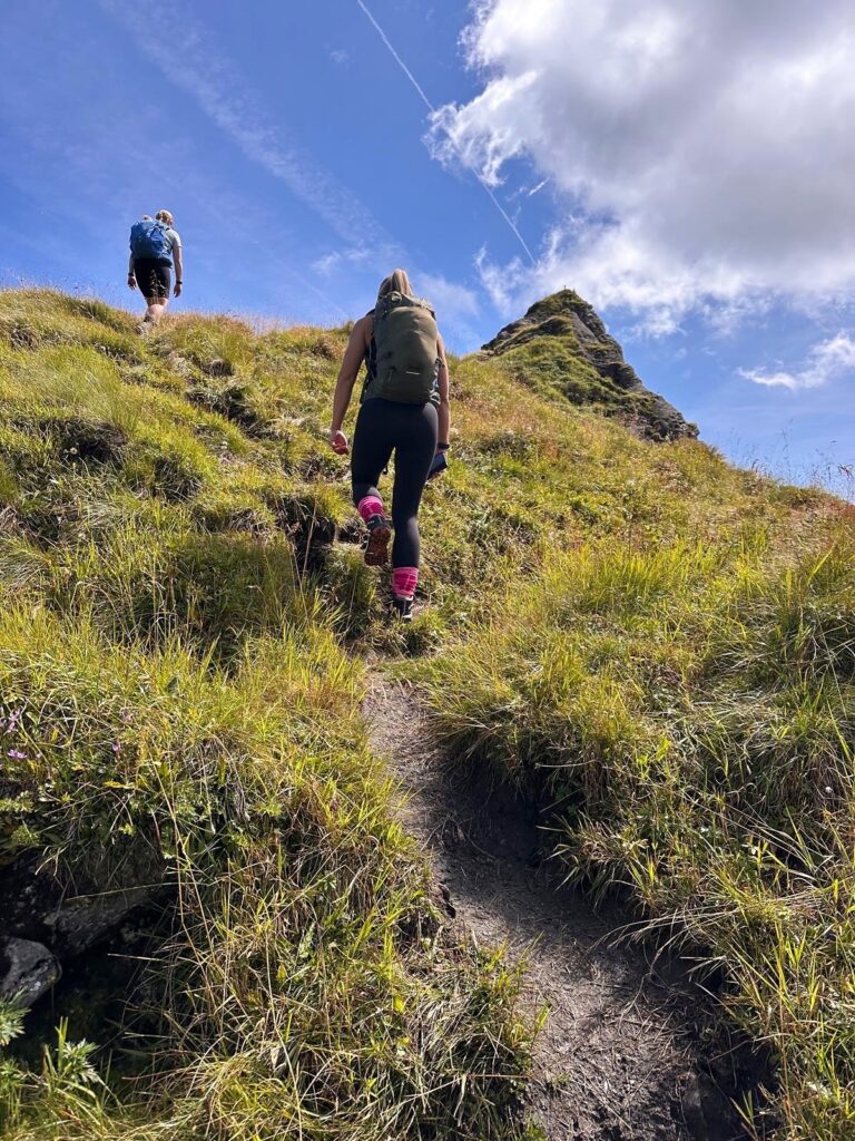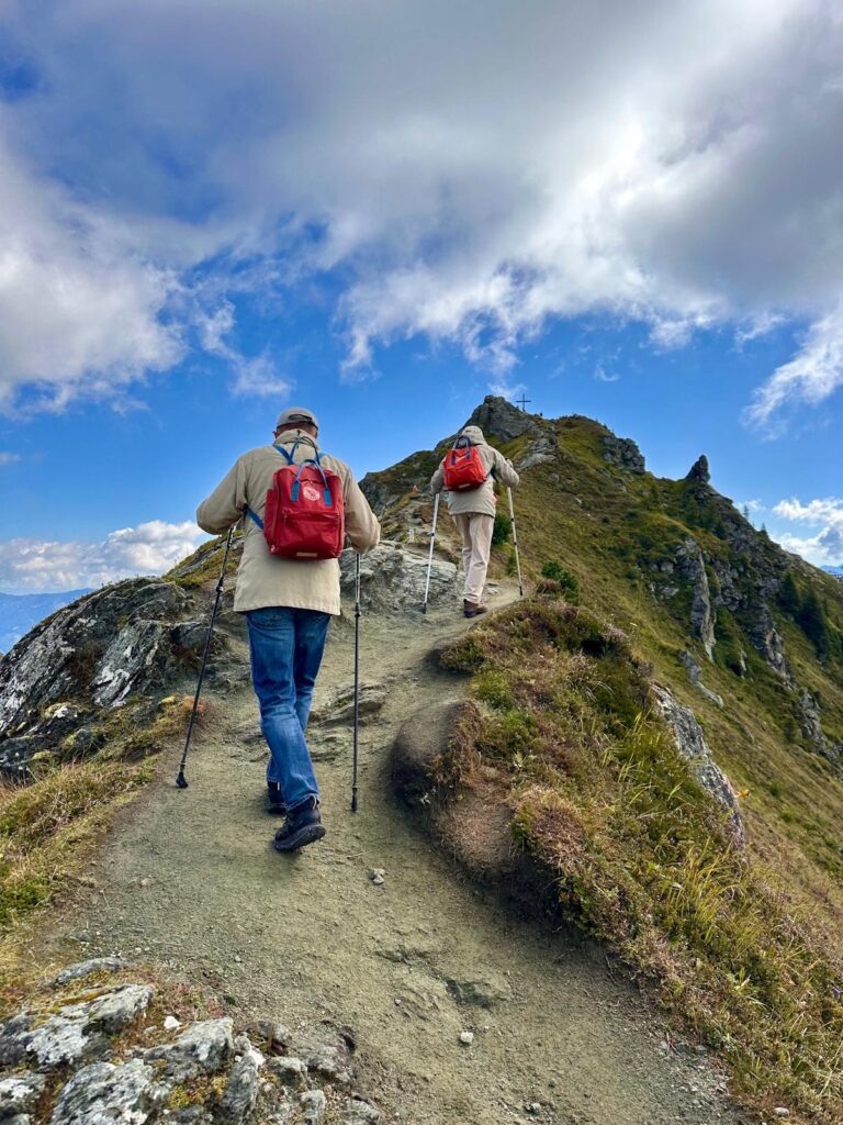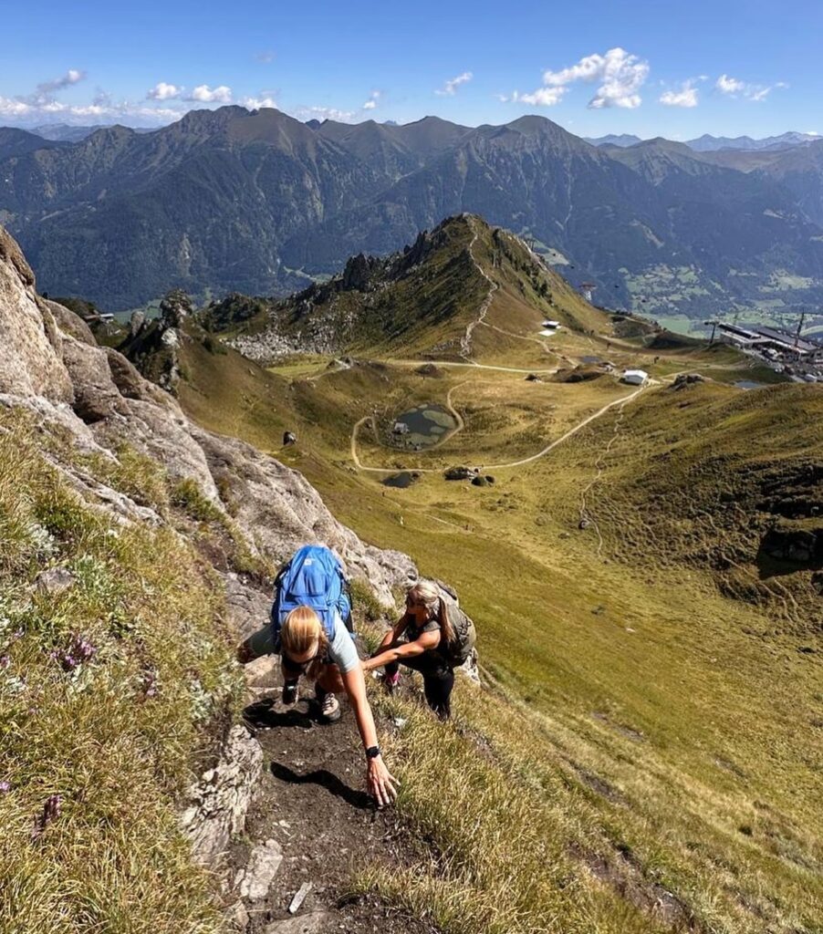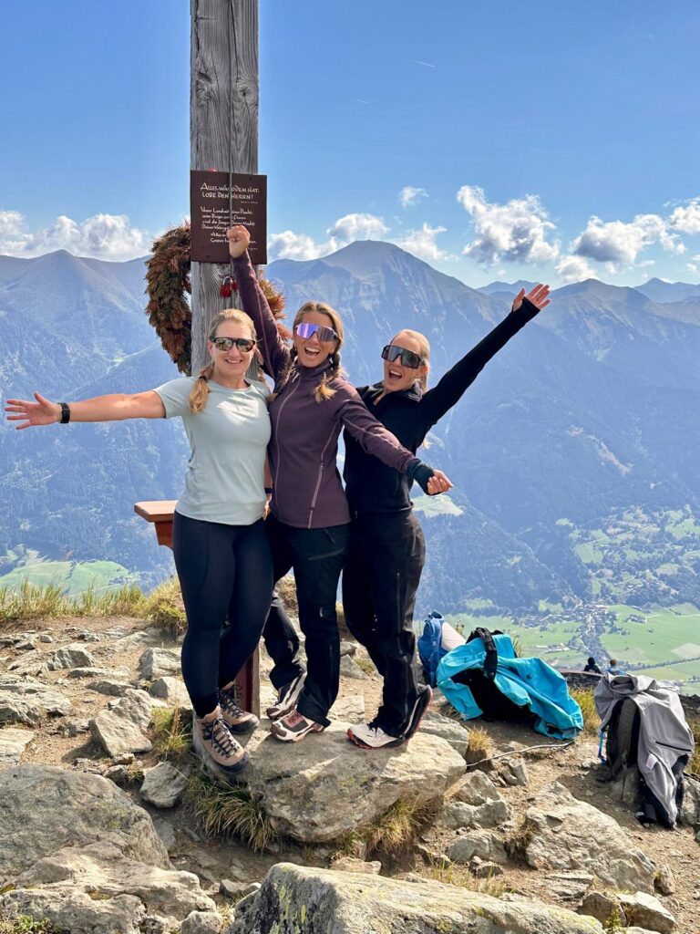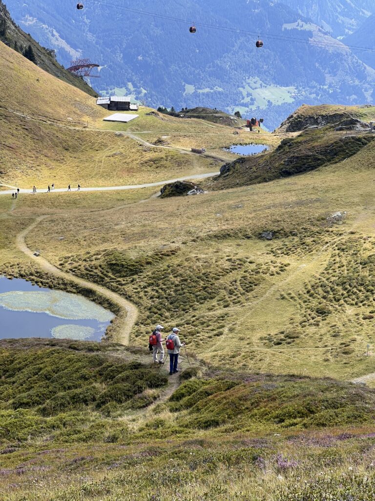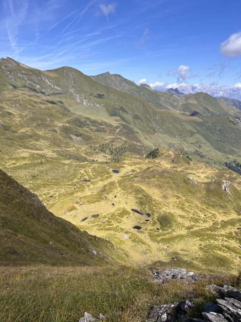 Idag tog vi buss 550 till Bad Hofgastein och sedan kabinliften i Schlossalm. Vi gick upp till Hirschkarspitze (2119 möh). Här uppe blev det kaffepaus with a view. Vi gick sedan ner till bergstationen och fortsatte upp på andra sidan och gick på kammen upp mot Mauskarkopf. Vi vände av neråt igen och gick upp på en topp till (utan namn). Lunchen blev spagetti bolognese på Kleine Scharte (2050 möh). Efter lunch gick vi en extrasväng mot Maurachalm. Otroligt vacker natur, som att gå i en saga. Vildhästar betade i dalen. En heldag på toppen i Bad Hofgastein. Otroligt vackert! //Vickan