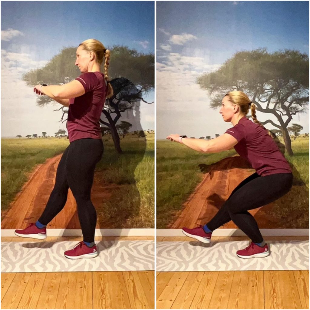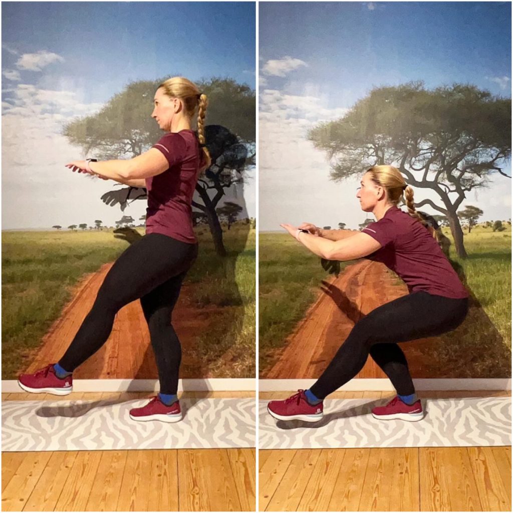Stå på en fot och balansera med armarna. Böj benet så mycket du kan, max ner till 90 grader i knät. Se till att knät går rakt över foten, då det är lätt att knät faller inåt eller utåt. Fokusera och balansera. Kör klart 8 reps på ett ben innan du byter ben.